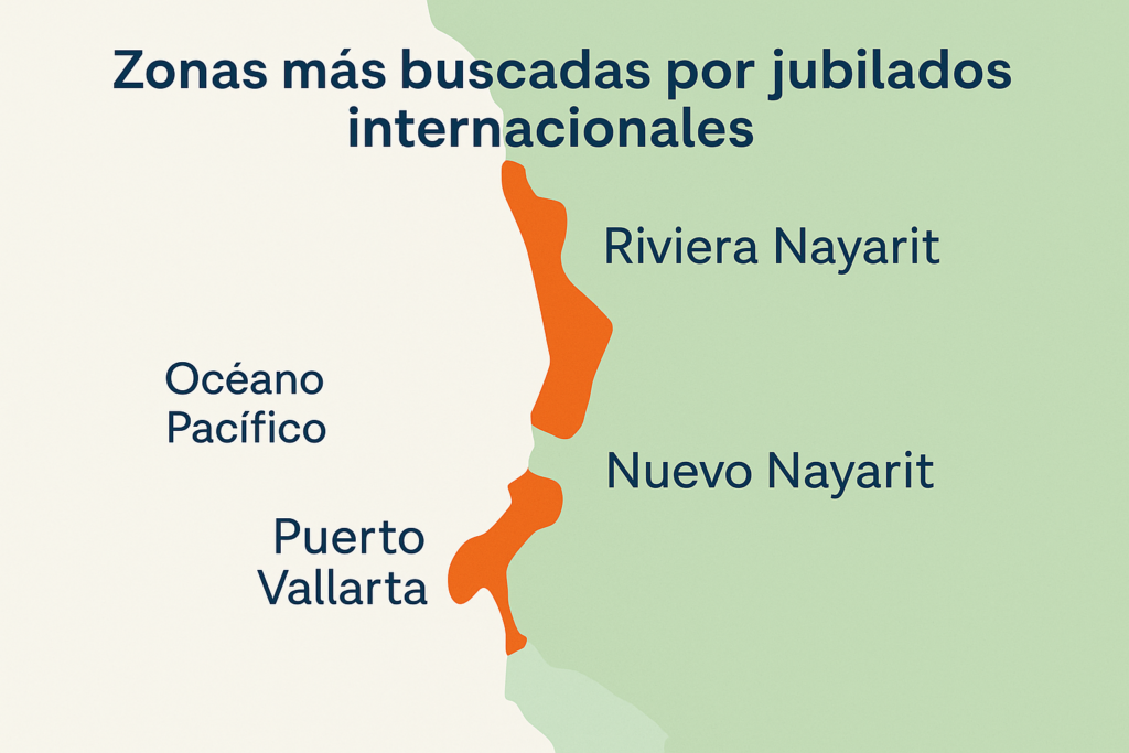 - El 65% de los jubilados encuestados en Canadá y EE.UU. consideran a México como destino de retiro en 2025, destacando Puerto Vallarta y Riviera Nayarit como sus principales opciones.